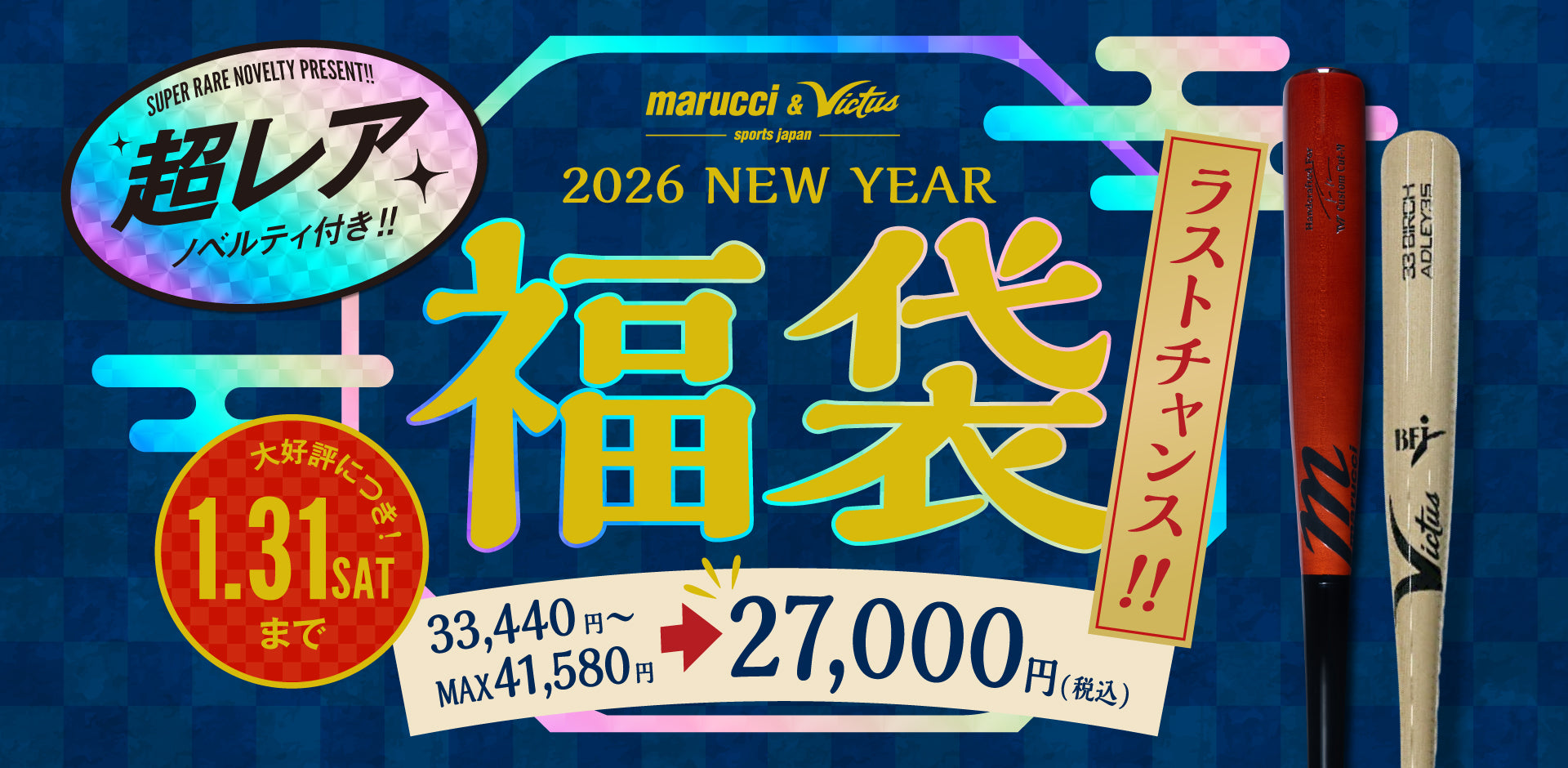 【限定ノベルティ付き🔥1/31(土)まで】2026年 野球用品(木製バット) 福袋