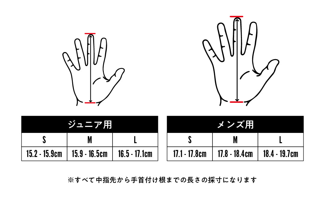 ・刺激や摩擦を軽減するために手の甲のステッチを最小限に抑えたエンボスロゴ